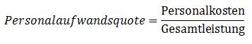 Die Personalaufwandsquote benennt den Anteil des Personalaufwands an der Gesamtleistung (Umsatz und Bestandsveränderung).