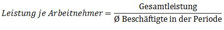Die Kennzahl zeigt die Gesamtleistung (z.B. mengenmäßiger Output) je Mitarbeiter und Periode an.