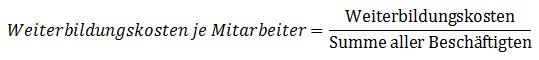 Der Anteil der gesamten Weiterbildungskosten eines Zeitraumes (Quartal, Jahr), welcher durchschnittlich für einen Mitarbeiter aufgewendet wird.